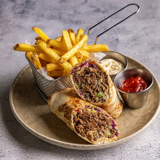 (مع طبق إضافي من اختيارك من السلطة أو البطاطس المقلية)