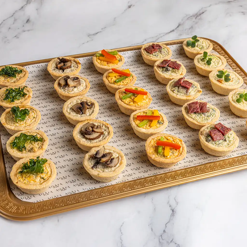استمتع بمزيج شهي من طبقة خارجية هشة وزبدية محشوة بالبيض ومجموعة متنوعة من المكونات اللذيذة المخبوزة حتى يصبح لونها ذهبيًا مثاليًا.